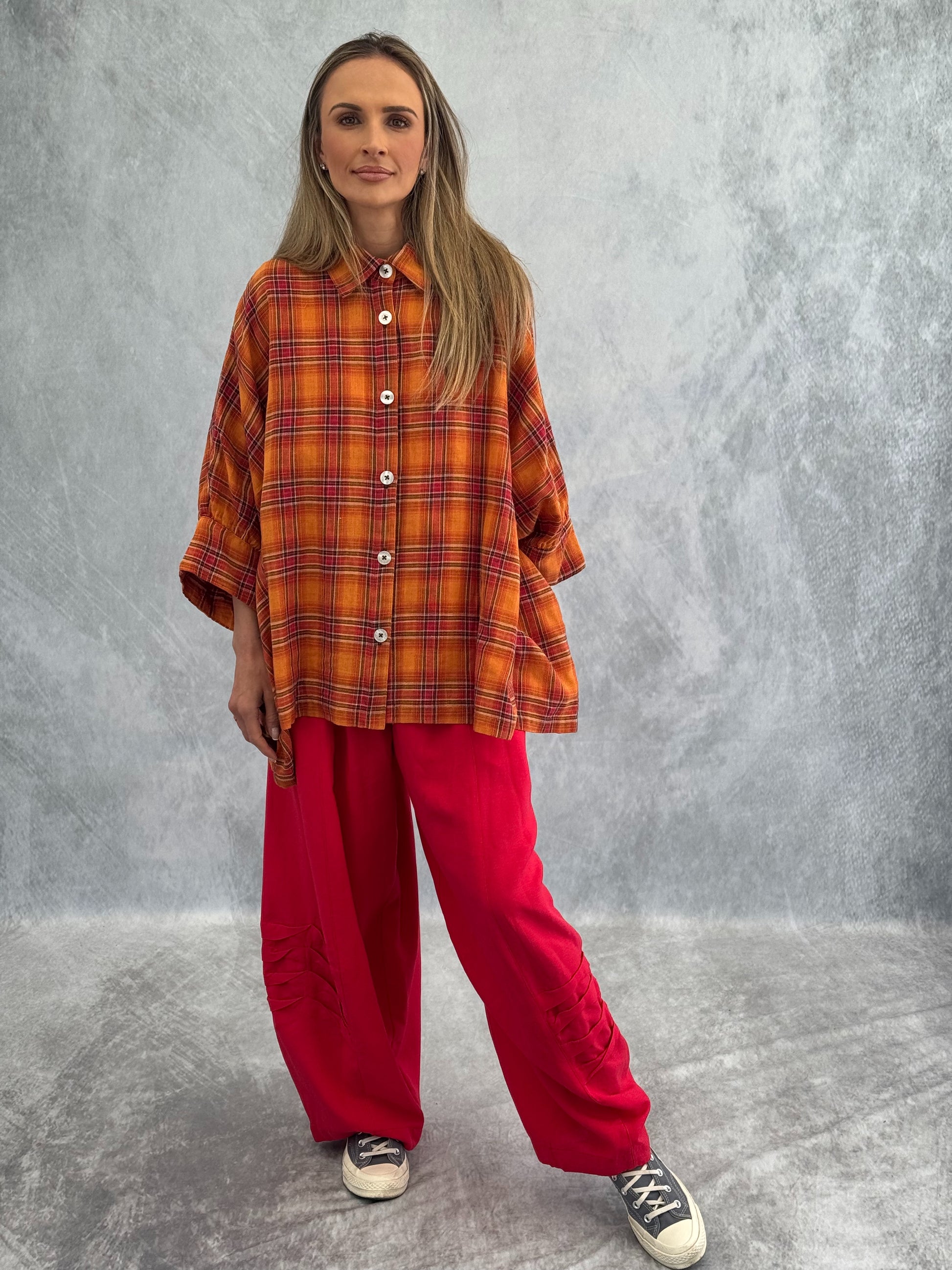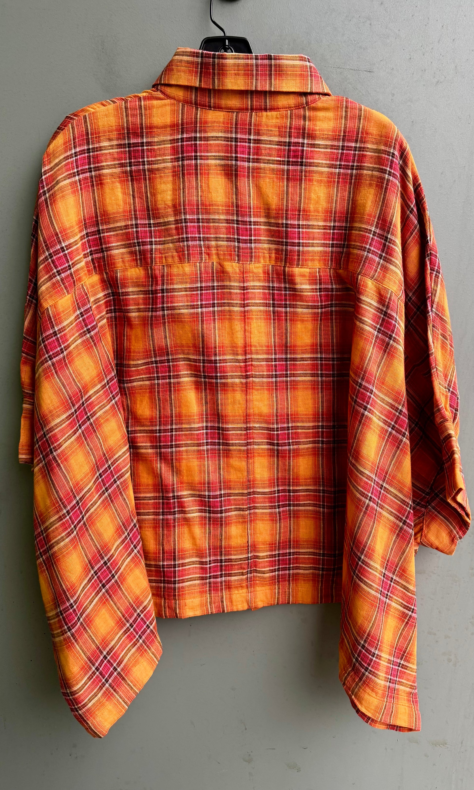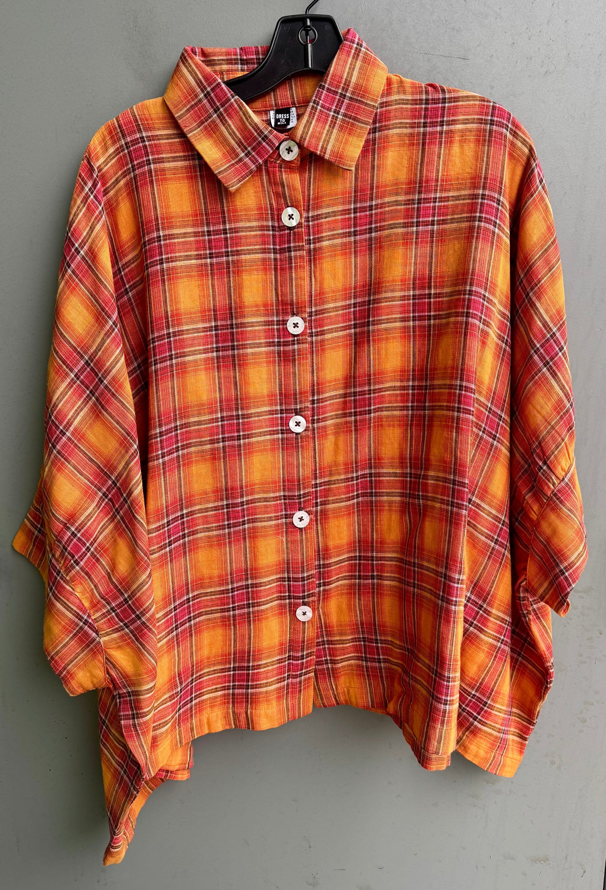 Orange fuchsia plaid, cotton gauze, one size, machine wash and dry
