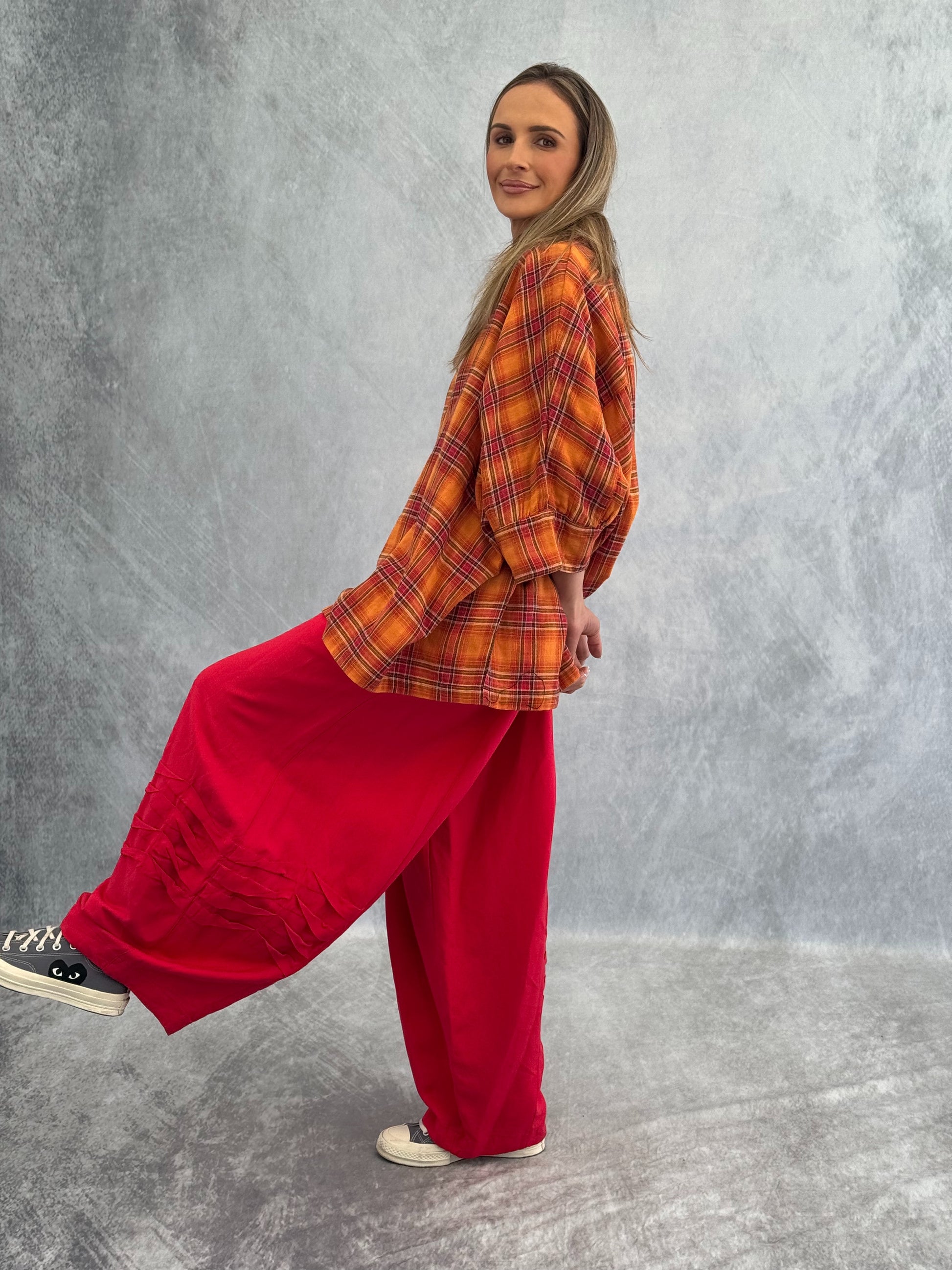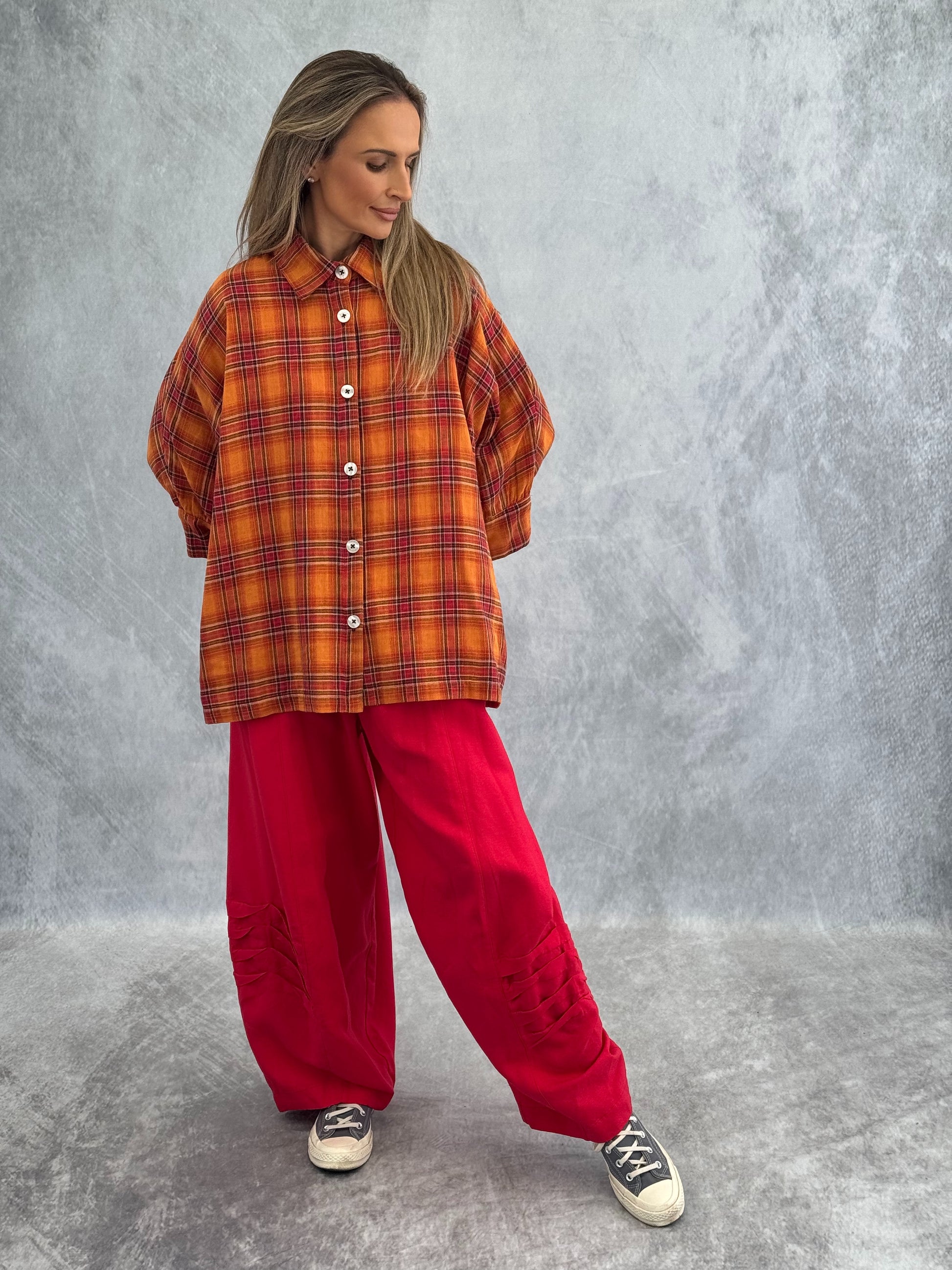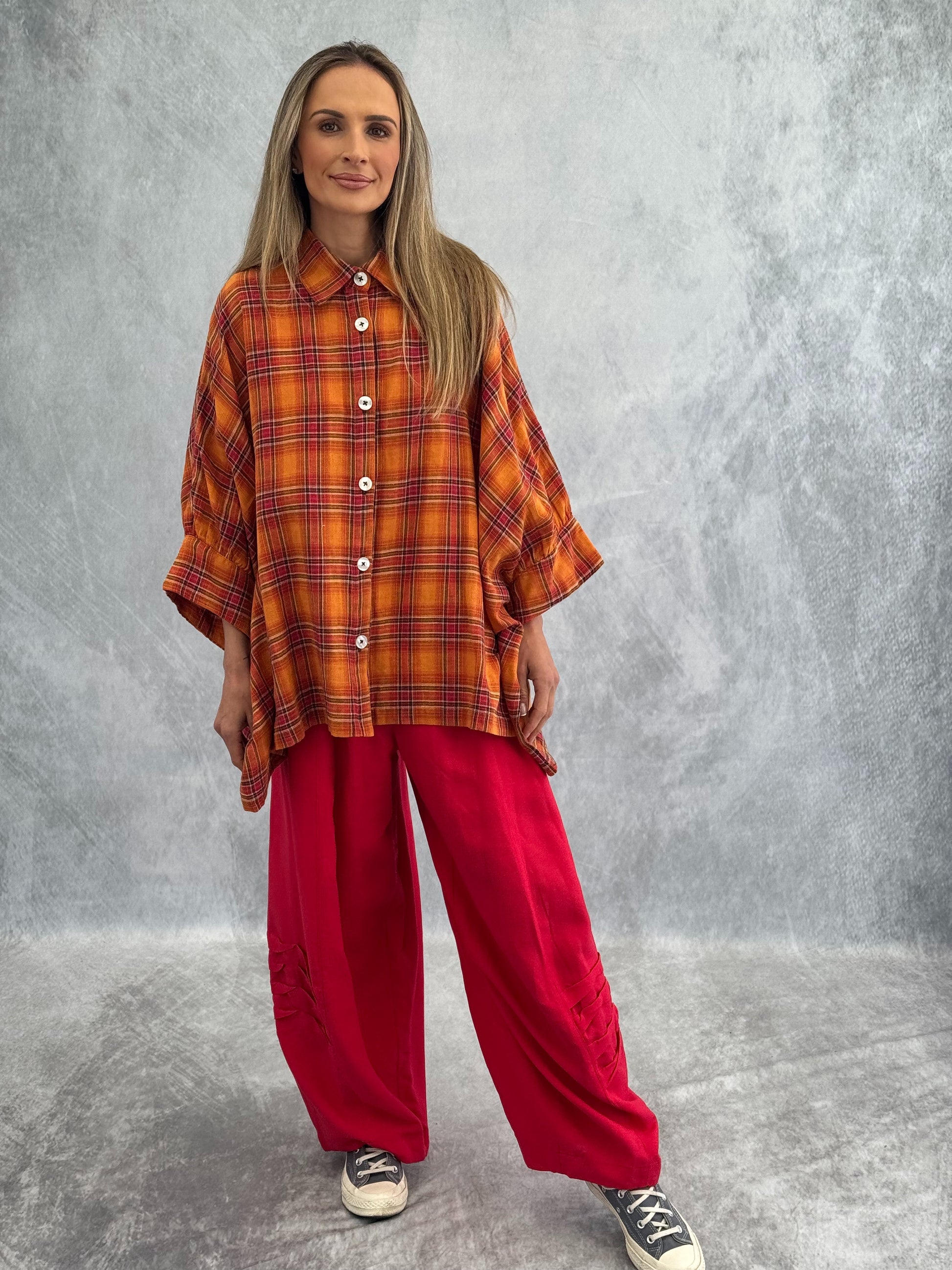 Orange fuchsia plaid, cotton gauze, one size, machine wash and dry