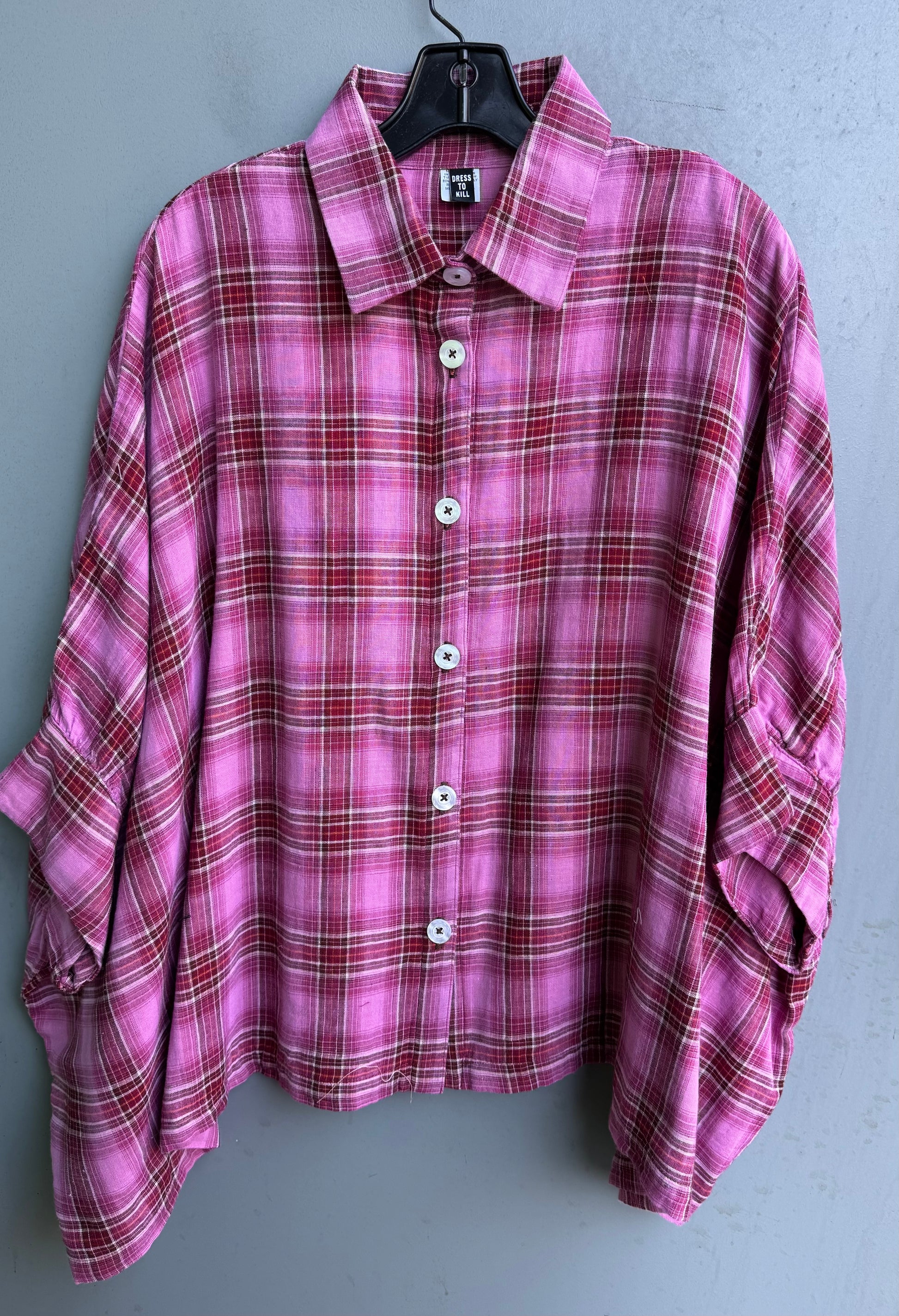 Fuchsia plaid cotton gauze, one size, machine wash and dry