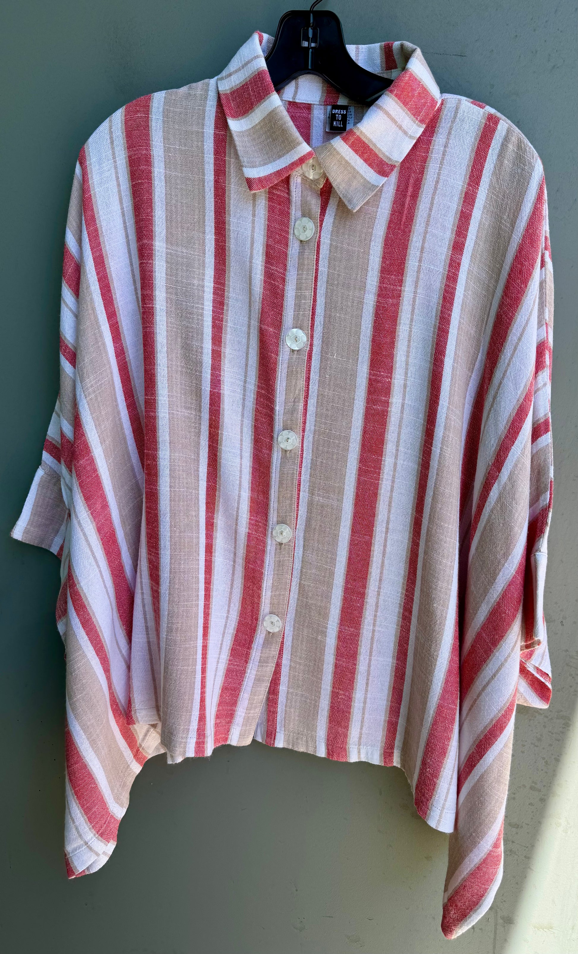 Red taupe white stripe cotton linen, one size, machine wash and dry