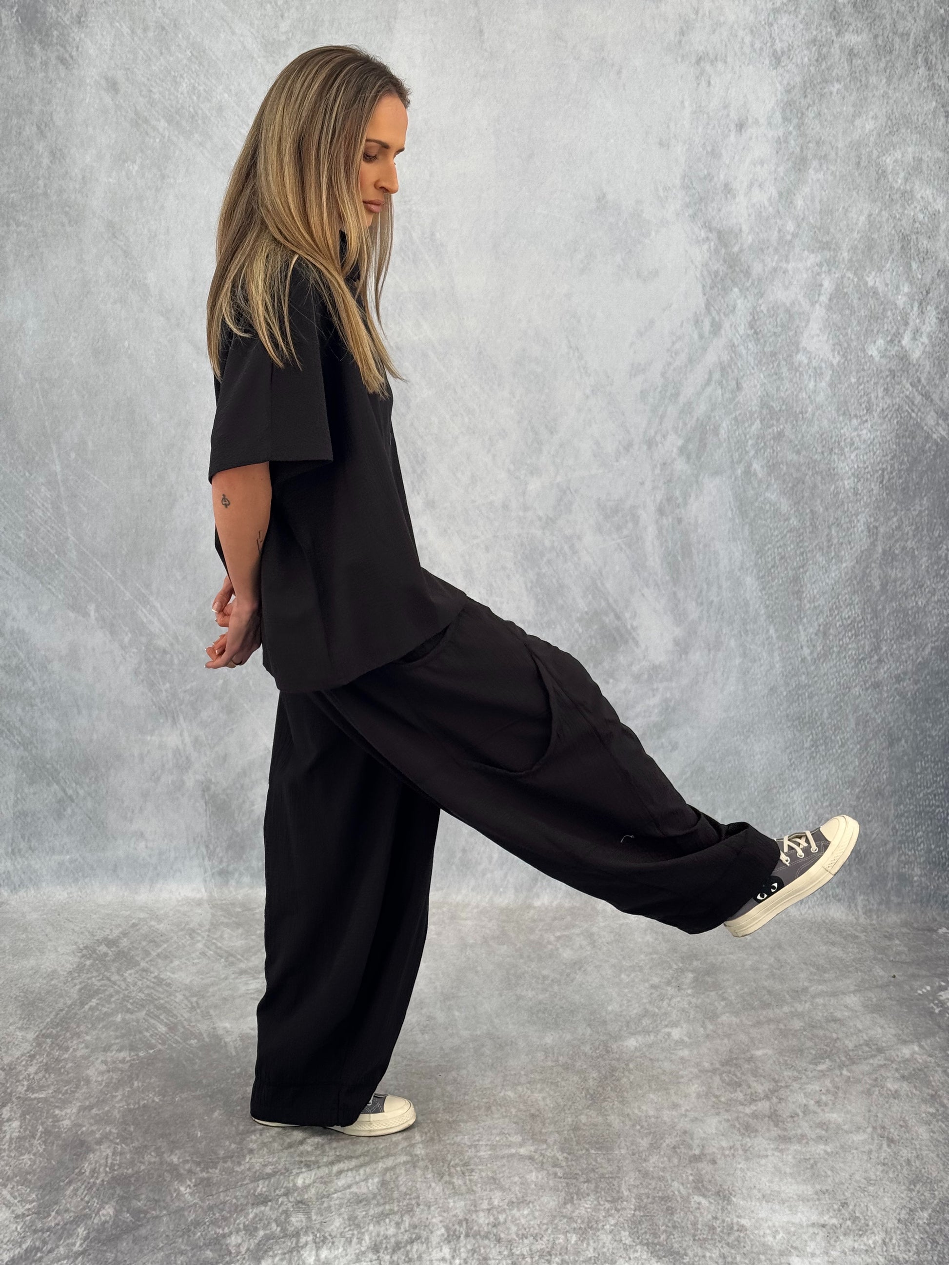 paired with our double pocket pant in black texture, sold separately