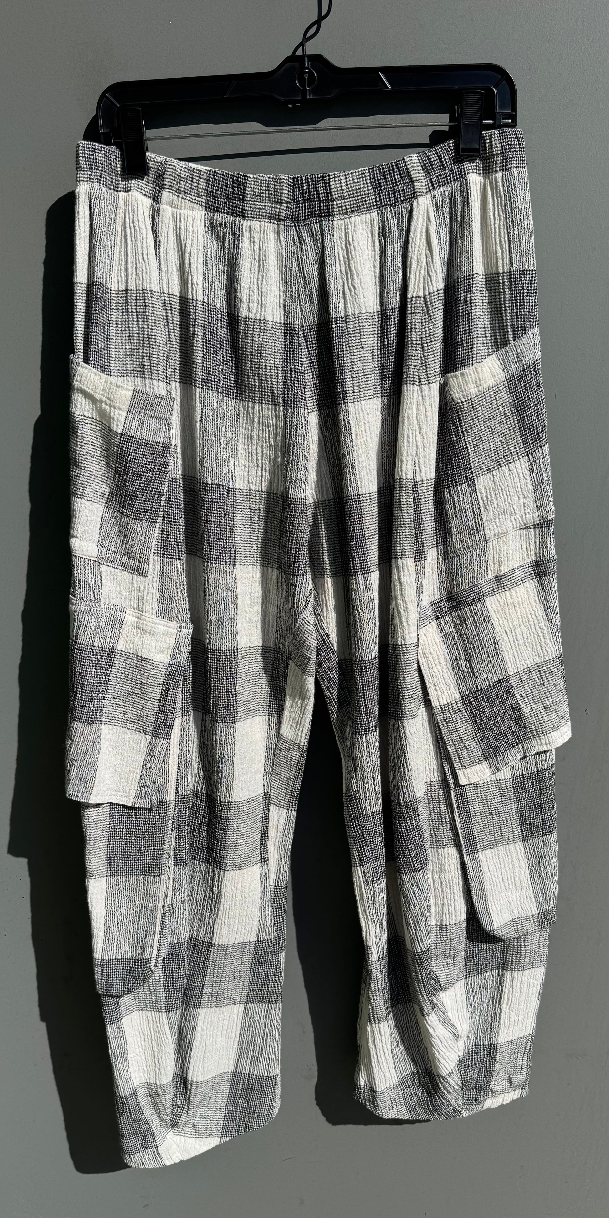 Black white plaid, cotton gauze, size 2, machine wash and dry