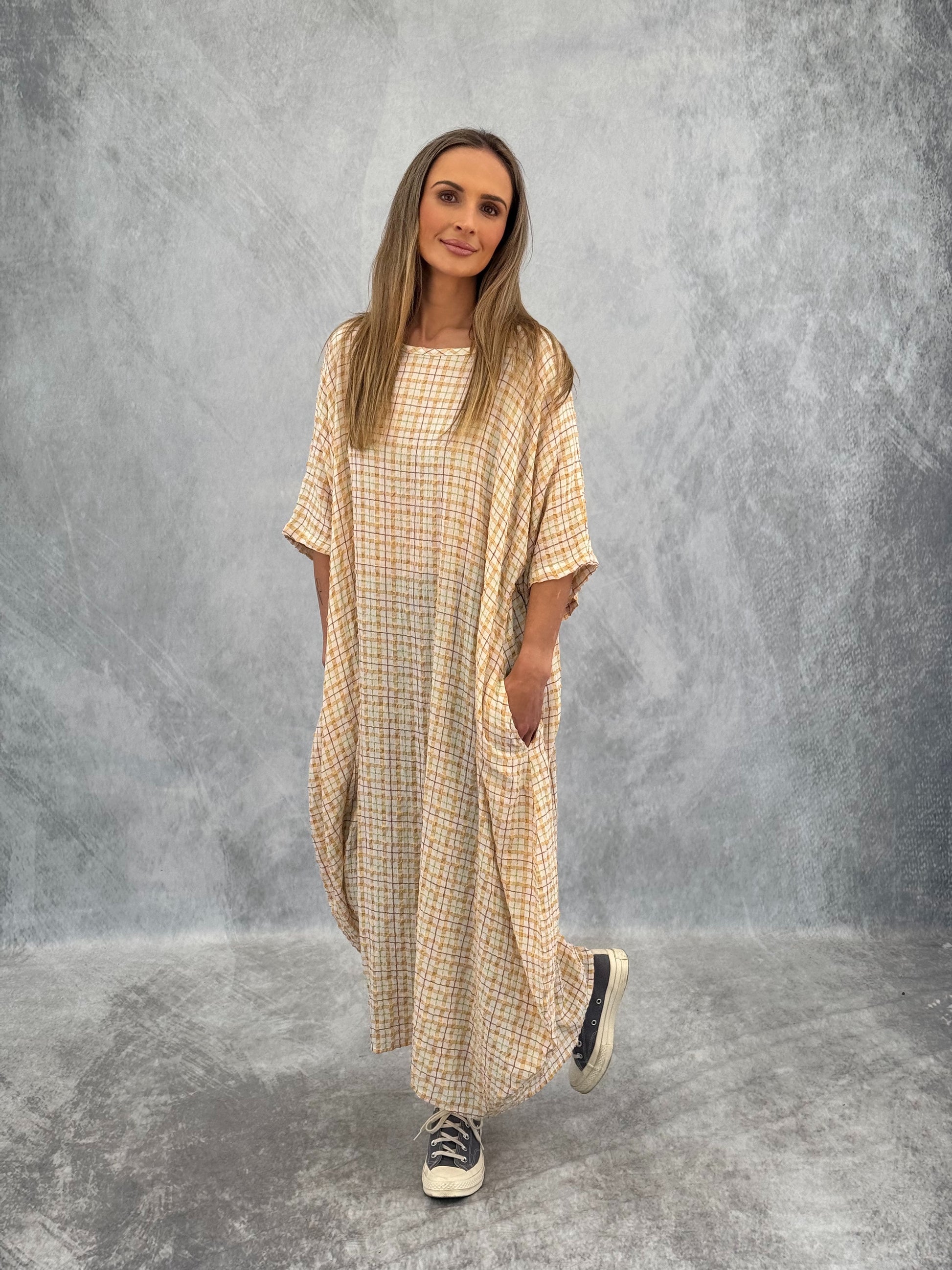 Orange white kiwi check, cotton blend, one size, machine wash and dry