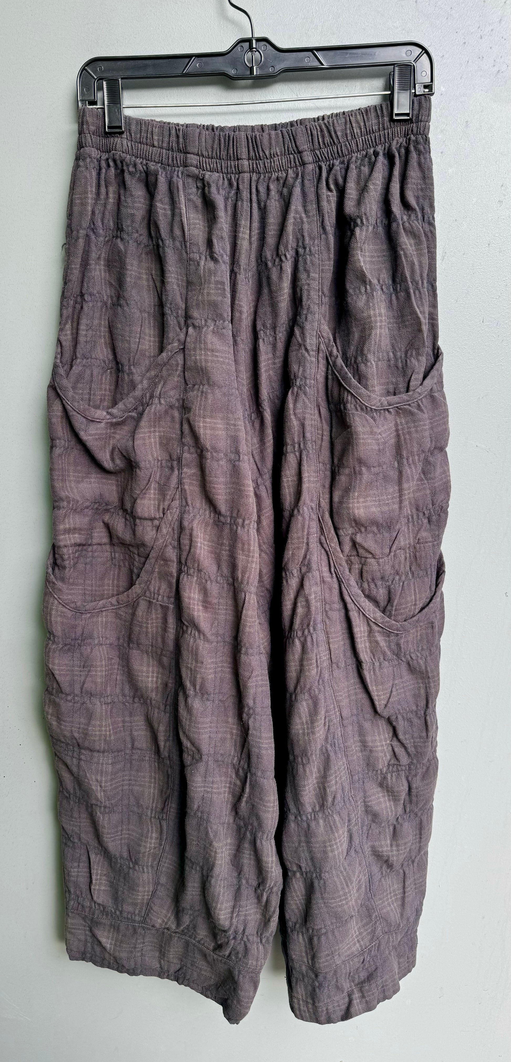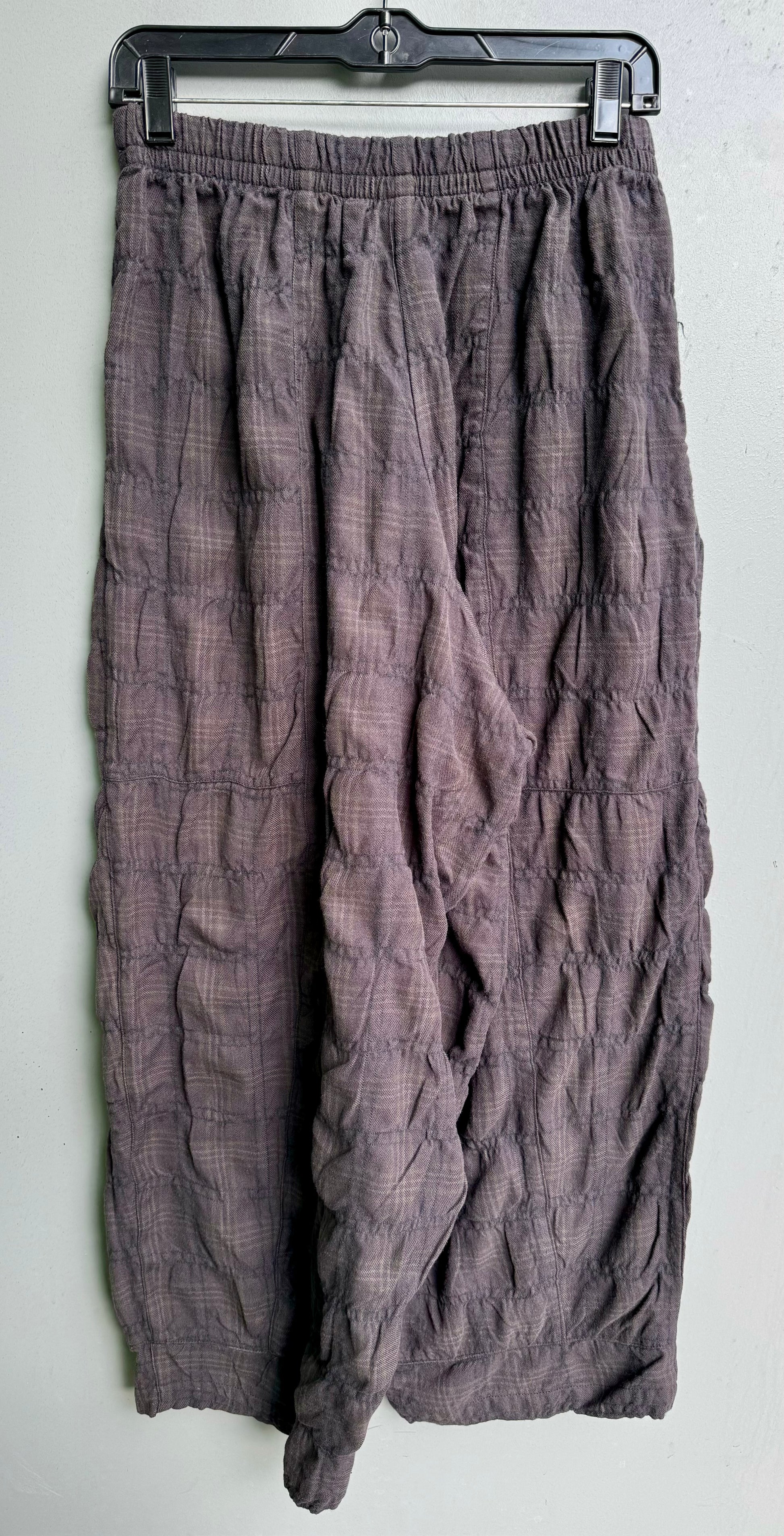 Grey black plaid with army green stripe, flannel, machine wash and dry.