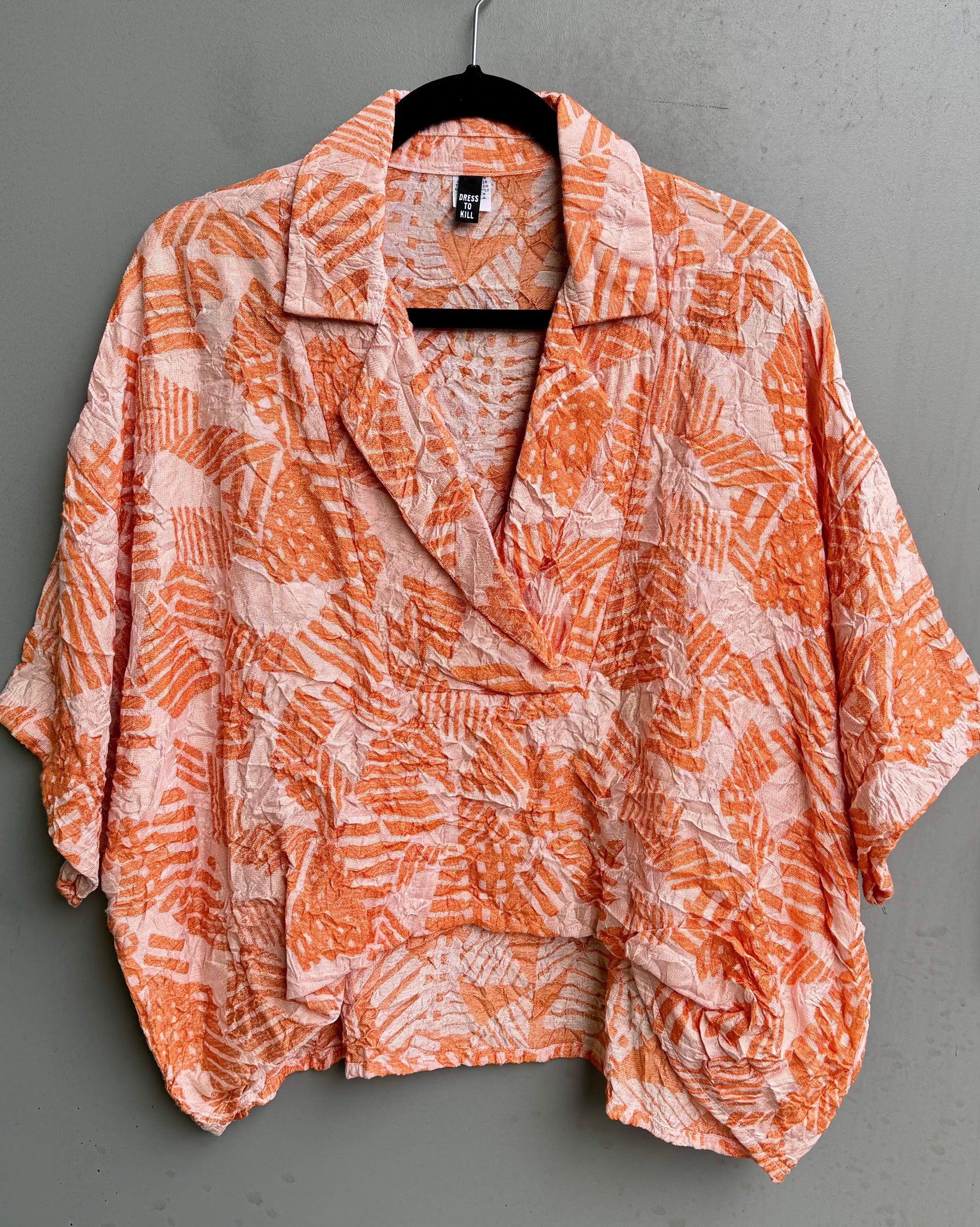 Orange stripe stamp, one size, machine wash and dry, cute layering piece. Especially over one of our glamour dresses, but you can also layer over a top and pair it with a pair of pants