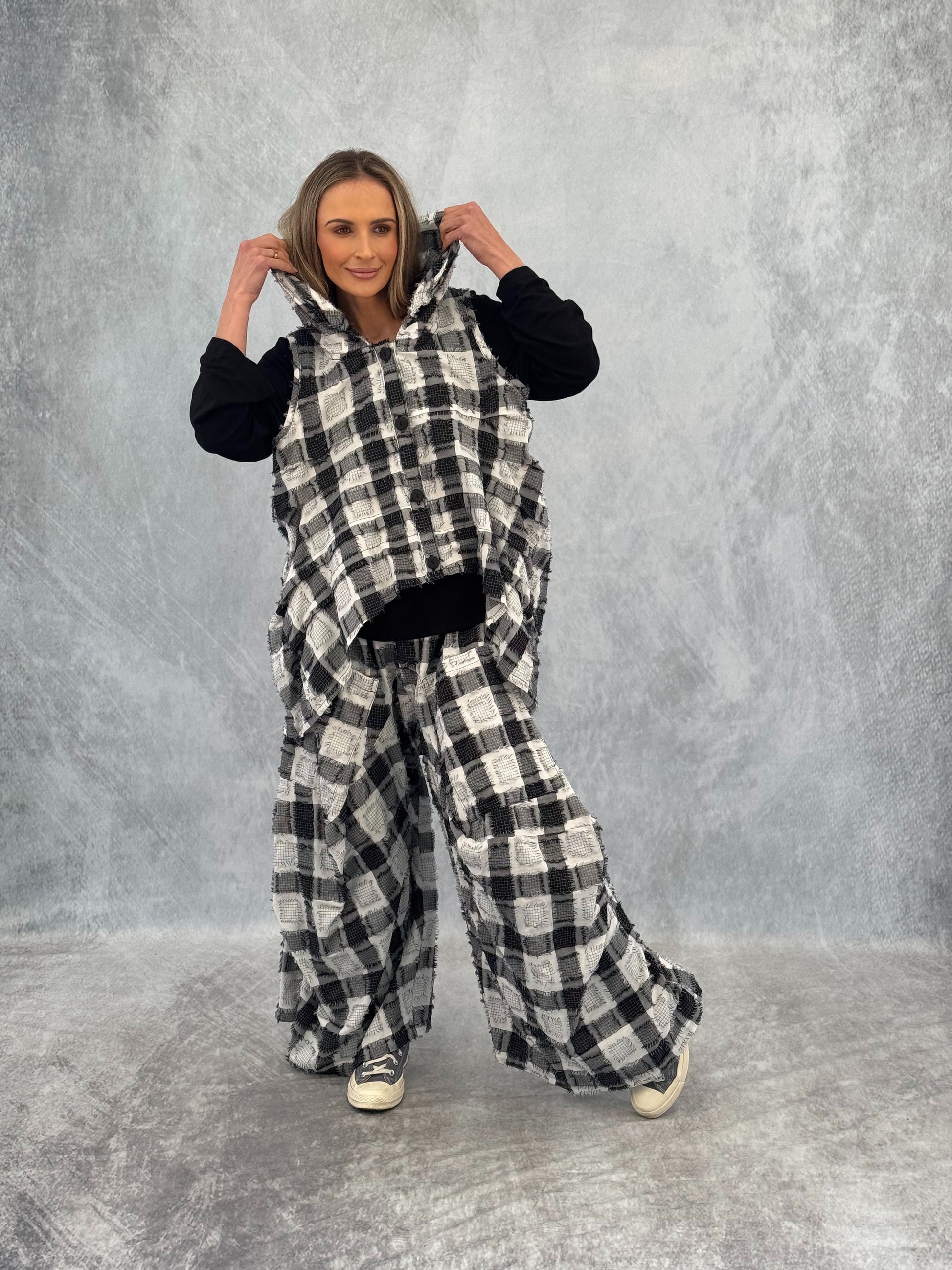 White black plaid ragged edge, one size, machine wash and dry . Button down from