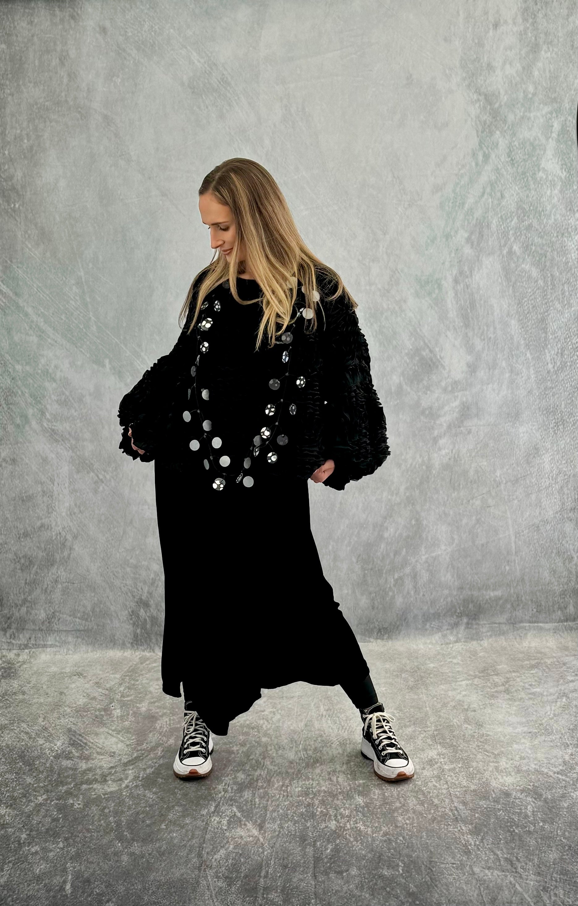 •layered over a glamour dress in black velvet, glamour dress sold separately•