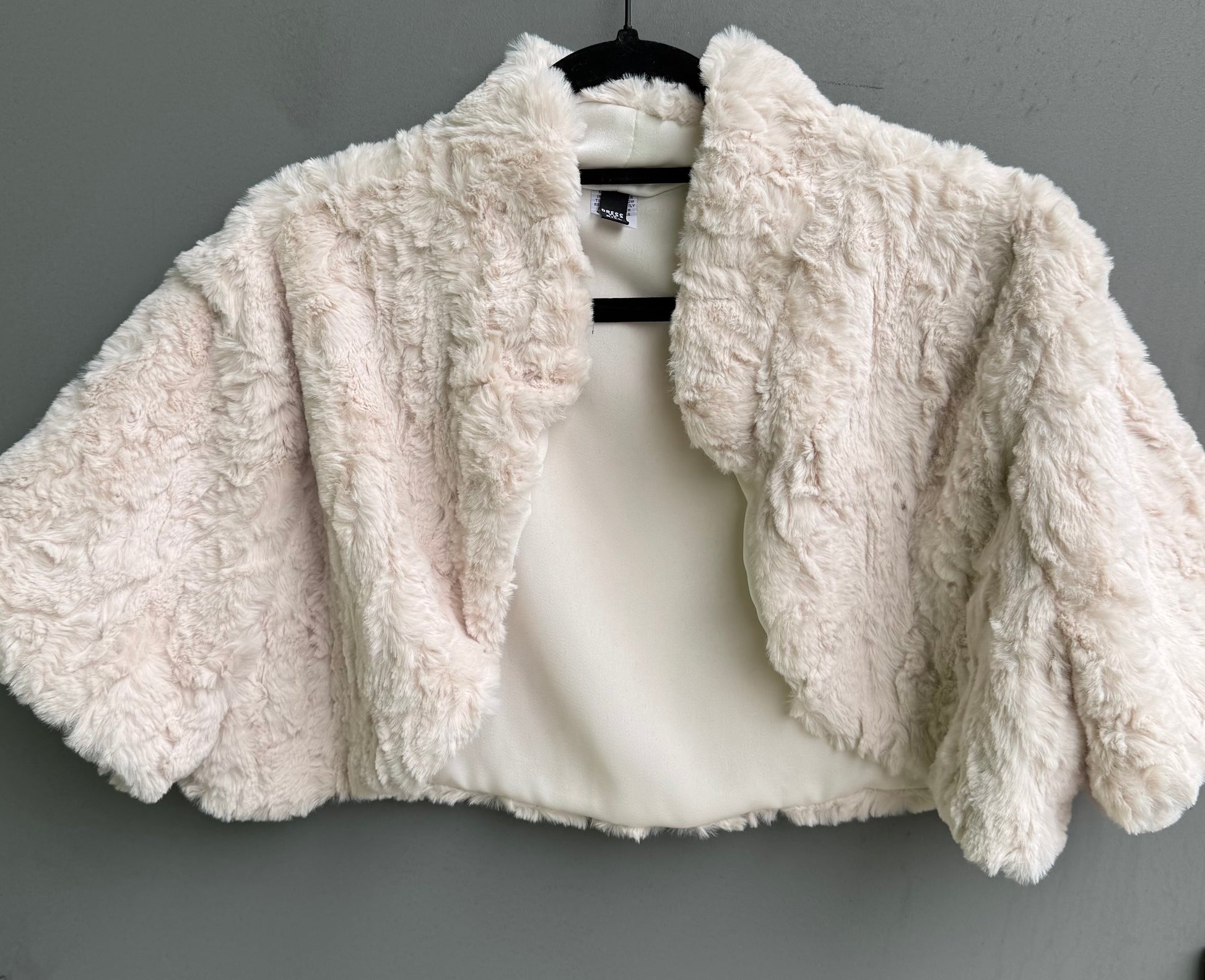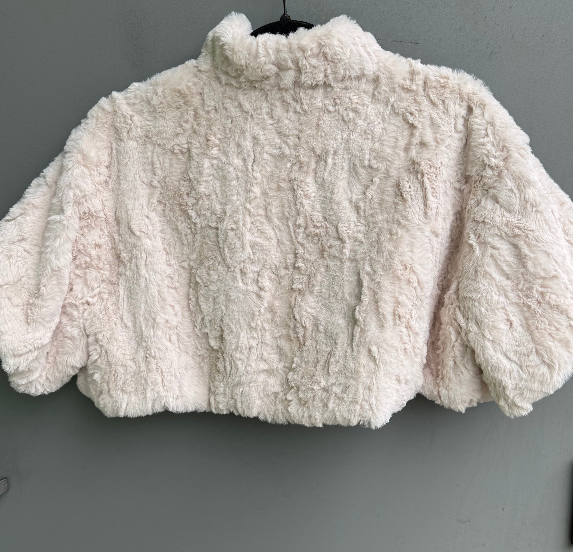Off white faux fur, short shall, one size , machine wash and dry