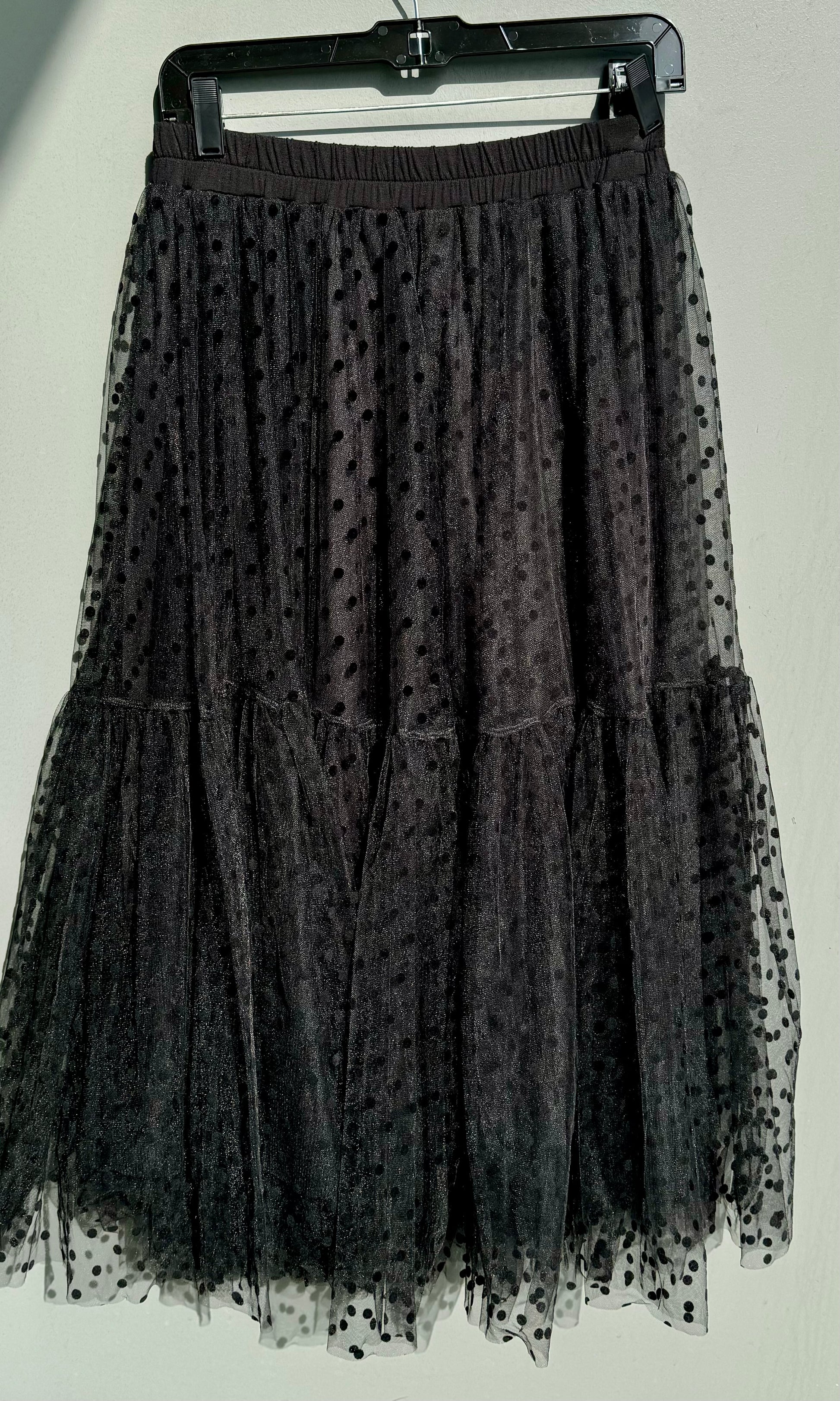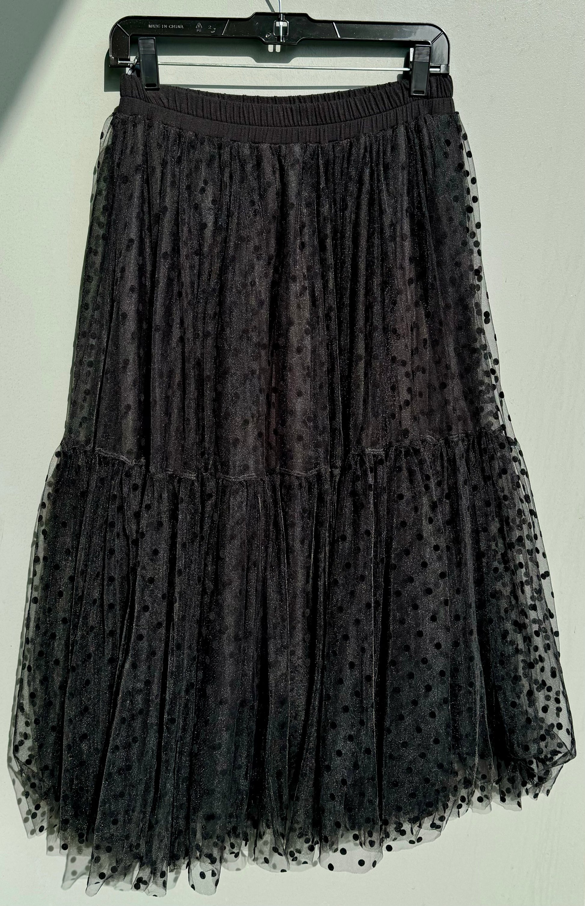 Black dot netty skirt, one size, machine wash and dry