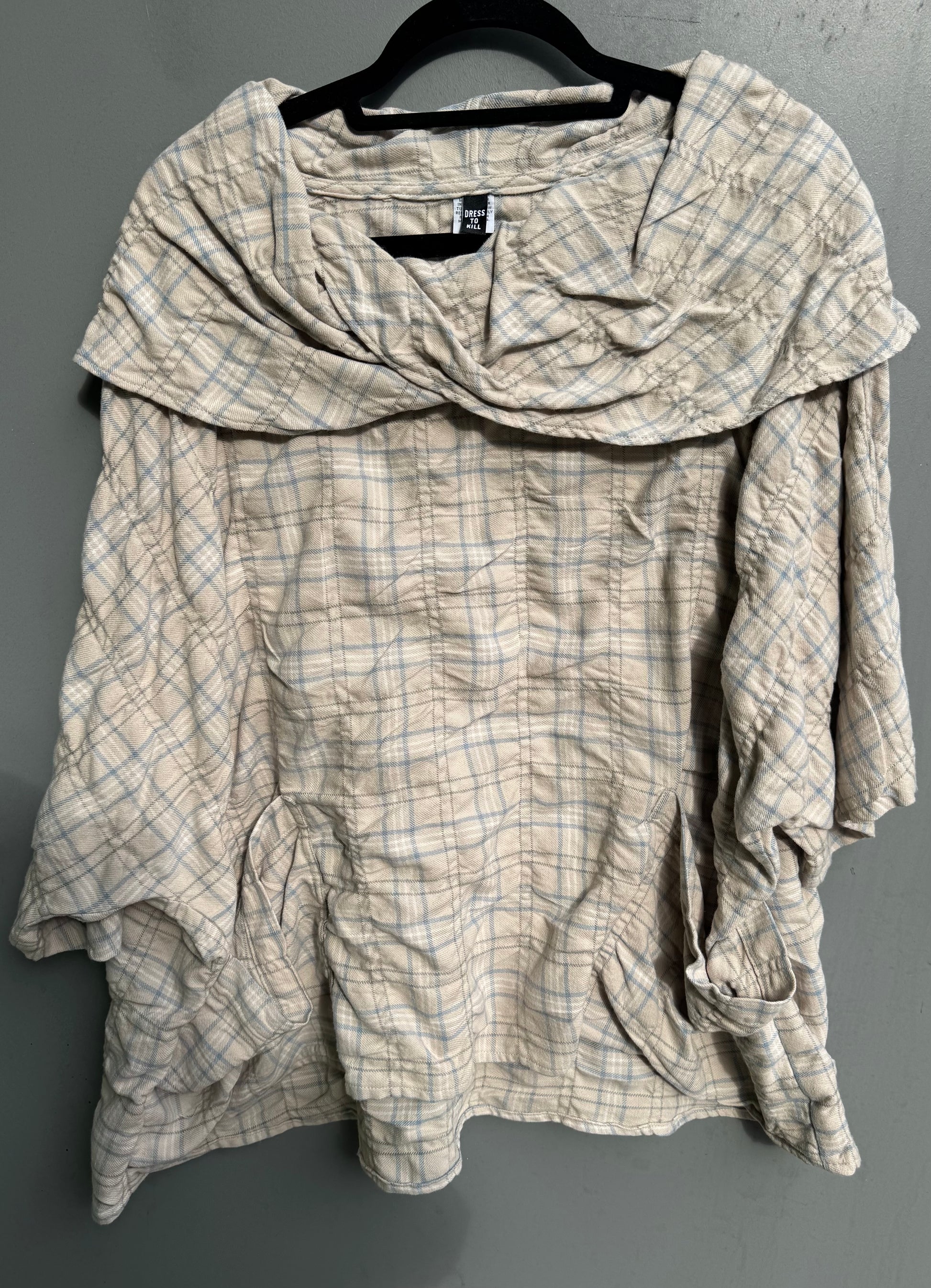 Off white light blue plaid flannel, one size, machine wash and dry